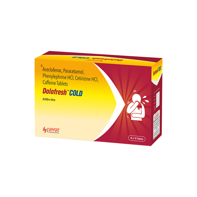 ACECLOFENAC 100MG + PARACETAMOL 325MG + PHENYLEPHRINE HCL 10 MG + CETIRIZINE HCL 5 MG + CAFFEINE 25MG